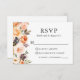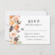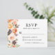 Carte RSVP de mariage floral élégant moderne à l'aquarelle comprenant de belles fleurs d'automne sur un cadre géométrique doré. Roses orange, roses pêche, roses dorées, roses roses, succulentes couleur prune, verdure botanique de roses blanches. Dos en terre cuite.