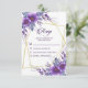 Ici, ce design a violet et le motif botanique pourpre floral avec cadre géométrique de flux doré. Tous les détails de ces cartes rsvp sont facilement personnalisables en cliquant sur le bouton personnaliser. Cette carte à l'arrière a dusky violet élégant arrière - plan.