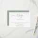 Une simple carte de réponse avec une écriture signature vert sauge élégante avec vos détails présentés dans une typographie chic. Conçu par Thisisnotme