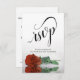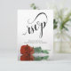 Ces belles cartes RSVP vous permettront de répondre facilement à vos faire-part de mariage. Elles présentent un design élégant avec une calligraphie de script sophistiquée et un seul rose à long tige orange rouille ou de couleur rouge brûlé réfléchissant dans un bassin d'eau avec des vagues et des ondulations. Le verso de la carte est un formulaire à remplir et à retourner, indiquant s'ils peuvent y assister ou non, le nombre d'invités qu'ils apportent et leur choix de repas. Il y a également de l'espace pour un site Web afin que vos invités puissent répondre en ligne si cela leur convient mieux.