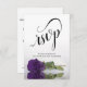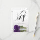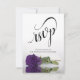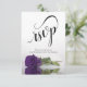 Ces belles cartes RSVP vous permettront de répondre facilement à vos faire-part de mariage. Elles présentent un design élégant avec une calligraphie script sophistiquée et un seul rose de couleur violet royal à longue tige se reflétant dans un bassin d'eau avec vagues et ondulations. Le verso de la carte est un formulaire à remplir et à retourner, indiquant s'ils peuvent y assister ou non, le nombre d'invités qu'ils apportent et leur choix de repas. Il y a également de l'espace pour un site Web afin que vos invités puissent répondre en ligne si cela leur convient mieux.