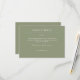Complétez votre gamme de papeterie mariage avec cette carte de boîtier de réponse RSVP orientée typographie conçue pour coordonner avec notre gamme de papeterie mariage "Elegant Modern Simple Elements". ● ✦ Entièrement personnalisable et facile à personnaliser. Disponible dans une palette de couleurs soigneusement entretenues, cette carte peut être adaptée à votre thème mariage ou à votre style personnel. Nous sommes là pour vous aider à adapter la conception à vos détails mariages spécifiques - texte, alignement, couleur personnalisée, etc. - et vous aider à créer une suite de papeterie mariage cohésive qui vous est propre.