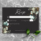 Notre carte de réponse au mariage noir au charbon sans choix de dîner avec une pivoine blanche frappante, centre jaune doux, verdure luxuriante et des poupées de coton délicates est un chef-d'oeuvre moderne. Le texte blanc immaculé ajoute une touche d'élégance, tandis que l'arrière - plan sombre crée un décor spectaculaire pour votre journée spéciale. Ce design est un mélange époustouflant d'élégance moderne et de romantisme intemporel. Créé par Simply Farmhouse Press.