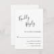 Carte RSVP de mariage simple avec "Kindly Reply" dans un élégant script manuscrit en haut à gauche et les choix de réponse ainsi que le nombre de participants en alignement droit en bas à droite. Tous les éléments de conception sont en noir et blanc et peuvent être modifiés dans l'outil d'édition de conception. Le design minimaliste est agrémenté d'une touche romantique grâce au lettrage à la main chic.