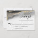 Magnifiquement élégante et luxueuse, cette carte RSVP de mariage de bon goût a une bordure asymétrique le long du sommet dans un motif abstrait moderne brillant d'or et de marbre noir. Les couleurs chic donnent le ton à votre mariage de rêve. Le look est luxueux, artistique et contemporain. Personnalisez le modèle de texte avec la date RSVP requise.