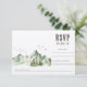 Aquarelle peinture paysage d'arbres, oiseaux volants et montagnes dans l'arrière - plan. Illustration nature calme et sereine avec pins et silhuettes d'oiseaux volants. Assurez-vous que votre invité obtienne toutes les informations de votre journée spéciale avec cette carte RSVP. Inclut l'espace pour les invités à ajouter des restrictions alimentaires.