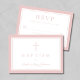 Elegant Pink Religious Cross Girl Baptism RSVP Card.