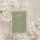 Un code QR vert choix de repas carte RSVP, avec un modèle botanique élégant aquarelle, un script de calligraphie moderne minimal, bohème vert terre, ampersand vert minimaliste, option de repas traditionnel invité rsvp, douce romantique élégance des couleurs rougies, réponse du client site web, la suite de papeterie verte sauge, réponse du client via le site web