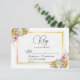 Notre carte RSVP florale élégante rose et or avec eucalyptus est idéale pour les amoureux de la nature. Cette carte est le moyen idéal pour obtenir votre message spécial de vos invités. L'aspect naturel de la couronne florale d'eucalyptus est parfait pour tout mariage d'automne ou d'hiver. La couleur or ajoute une touche d'élégance.