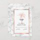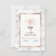 Offrez à vos invités de répondre à votre faire-part de mariage avec cette carte RSVP élégante avec script moderne, texte gris fusain avec un palmier artistique en cuivre or rose et cadre en cuivre or rose métallique sur le devant. Un arrière - plan en marbre blanc et gris orne l'avant et l'arrière de la carte.