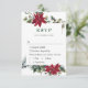 Elégante carte RSVP de mariage rouge Poinsettia Watercolor Pine.