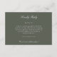 Carte d'enceinte de réponse RSVP pour mariage propre et moderne, conçue pour coordonner avec notre Elegant Modern Rustic Fleur sauvage Suite mariage. Choisissez parmi notre sélection d'arrière - plans blancs immaculés pour compléter votre gamme de papeterie mariage parfaite, ou ajoutez une pop de couleur avec un arrière - plan bleu ou vert coordonné. ● ✦ ✦ Personnalisez chaque détail pour en faire le vôtre. Nous sommes là pour vous aider à adapter la conception à vos détails mariages spécifiques - texte, alignement, couleur personnalisée, etc. - et vous aider à créer une gamme de papier à lettres mariage cohésif qui vous est propre.