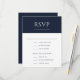 Elégant Script initial Monogramme Marine Blue Wedding RSVP Card se coordonne parfaitement avec notre élégant faire-part de mariage classique monogramme de scénario initial. Le type moderne comprend des plats et des dîners.