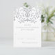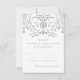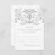 Le design élégant de la carte RSVP de mariage d'inspiration vintage comprend un design décoratif orné de bordure avec une apparence argentée/gris brillant métallique et du texte personnalisé qui peut être personnalisé pour la date d'échéance de réponse et le libellé de la réponse.