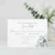 Ce design présente une aquarelle feuillage feuille classique RSVP carte de choix de repas classique, mariage de verdure eucalyptus, et un simple insert RSVP, carte de réponse du boîtier, un script de calligraphie élégant, avec typographie moderne classe, thème de la nature botanique, carte RSVP de mariage, schéma de couleur vert sauge, printemps été automne