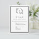 Carte de réponse RSVP avec code QR (ou supprimer des champs si nécessaire). Faire-part de mariage simple, élégant et moderne en noir et blanc, vos initiales monogrammes et votre texte d'invitation. Au verso, vous trouverez le code QR avec votre texte d'instruction. Cette conception a été créée à partir de feuilles feuillues dessinées à la main conception de couronnes pour un cadre monogramme contemporain avec une calligraphie Ampersand. Graphiquement conçu par Audrey Jeanne Roberts, artiste et designer de renommée internationale, copyright.