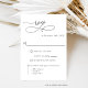 Mariage élégant RSVP avec option pour ajouter ou non des options de repas ou des questions diététiques. Suivez simplement les instructions sur les zones de texte modèles pour ajouter ou effacer les choix de repas. Design simple, élégant et élégant avec rsvp dans la gracieuse calligraphie manuscrite moderne. Design noir et blanc. Possibilité de changer la couleur arrière - plan blanche en d'autres couleurs en costumant plus loin et en éditant à l'aide de l'outil de conception. Une partie de notre collection "Elegance Minimal Black and White Monogram Mariage" avec une variété de produits de coordination disponibles. Visitez la collection entière à l'adresse suivante : https://www.zazzle.com/collections/elegance_minimal_black_and_white_monogram_wedding-119677926842478970