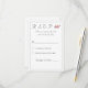 Design front features an elegant heading displayed at top in a lovely silver color displayed against a white background. The images of the Sacred and Immaculate Hearts of Jesus and Mary are pictured at right. Your text is featured in the traditional format for a Catholic response card. Entire design is framed with an elegant matching border.