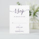 Cette élégante carte RSVP violet et blanche peut être personnalisée en lettres chic. Vous pouvez ajouter des informations supplémentaires telles que le choix du menu au verso. Parfait pour les mariages, douches nuptiales, baby showers, baptêmes, fêtes de fiançailles, fêtes d'anniversaire, diplômes, anniversaires et autres événements spéciaux tout au long de l'année! Conçu par Thisisnotme©