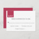 Voici notre carte de réponse mariage chic et moderne avec une élégante calligraphie blanche sur un riche arrière - plan magenta. Ce design est parfait pour le couple qui recherche un look design et contemporain pour sa journée spéciale. La calligraphie blanche et nette se distingue par son décor magenta audacieux, créant une carte RSVP sophistiquée et attrayante. Le stock de carton de haute qualité et votre choix de taille et de type de papier assurent une touche luxueuse et personnalisée. Que vous soyez à la recherche d'un design minimaliste ou d'une pop de couleur, cette carte RSVP de mariage laissera une impression durable à vos invités. Faites de votre fête mariage une expérience inoubliable avec cette carte RSVP design et contemporaine.