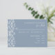 Carte de réponse de mariage élégante moderne bleu poussiéreux avec un design filigrane stylé et une typographie claire. Parfaite pour les mariages, les douches de mariée, les dîners de répétition et les célébrations formelles. Personnalisez facilement les noms, les dates et les libellés pour correspondre à votre thème de mariage et créer une papeterie cohérente que vos invités adoreront.