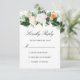 Cette élégante carte de mariage de calligraphie florale personnalisée RSVP présente des roses d'aquarelle peints à la main dans la pêche, le blush et le blanc avec la verdure. La typographie de script noir indique "Répondre gentiment" avec votre réponse par date pour personnaliser. Le dos de la carte indique "RSVP" en écriture noire cursive avec une bordure de fleurs sur un simple arrière - plan blanc. Consultez notre boutique I Love Weddingz pour en savoir plus sur cette collection. Conçu par Susan Coffey.