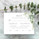 Ce design botanique unique présente une branche incurvée d'élégants feuilles d'eucalyptus à l'aquarelle avec des feuilles argentés artistiques et des fleurs sauvages blancs.