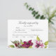 2 en 1 site web Mariage code QR d'un côté la carte de réponse traditionnelle pour les invités qui souhaitent l'envoyer par la poste de l'autre côté. Ce design a été créé pour le couple élégant et sophistiqué qui aime les détails audacieux mais classe. Les fleurs de ce design sont luxueuses. À la base des arrangements floraux à l'avant et à l'arrière sont des feuilles d'eucalyptus verts vibrants tenant de belles grandes fleurs ou fleurs et des baies délicatement peintes en couleur de boysenberry et magnolias blancs avec la même couleur et la même technique d'ombrage. La police calligraphie anglaise lui donne les dernières touches d'élégance, Félicitations à votre mariage, et merci de vous être arrêté par SukisWorkshop. Une partie de la collection Berry Many Love Mariage, qui accueille des papeteries mariages supplémentaires, des invitations, des cartes de remerciements, des scellés d'enveloppe, des étiquettes d'envoi et plus encore. Il dispose également d'une belle sélection de fournitures de fête et décorations avec des designs assortis, y compris bannière d'accueil, faveurs, fête nuptiale merci cadeaux et de luxueux fond de mur photo.
