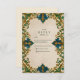 An opulent Islamic wedding design featuring a teal and gold arched frame inspired by mosque architecture and Persian artistry. With intricate floral motifs and geometric symmetry, this invitation exudes elegance, spirituality, and timeless cultural refinement — ideal for a luxurious Islamic wedding.