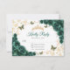 Emerald green gold floral Quinceanera RSVP reply card. Features, script font, gold butterflies, watercolor roses and tiara. Perfect for an elegant princess style glam celebration. Personalize with your own details.