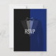 Cette carte de réponse de RSVP à une soirée poker pour un enterrement de vie de garçon en smoking bleu noir sera parfaite pour d'autres occasions également. Célébrez avec style avec cette collection entière. La collection peut être modifiée pour s'adapter à votre événement, elle est personnalisable. Profitez de votre célébration, à votre santé !
