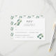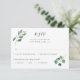 Ces cartes de réponse mariages présentent une aquarelle botanique feuillage de feuilles d'eucalyptus. Personnalisez avec votre texte. Des invitations assorties et d'autres papeteries sont également disponibles.