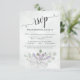 Cette belle carte RSVP présente un design simple mais élégant avec un ensemble de feuilles d'eucalyptus peints à la main et des fleurs de lavande dans les tons vert sauge et violet clair. Le titre est écrit en calligraphie en dentelle et il y a de l'espace pour que vos invités indiquent le nombre total de participants et leur choix de repas.