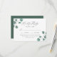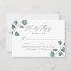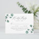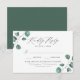 Cartes RSVP de mariage Elégantes et eucalyptus avec votre date de réponse désirée et choix de dîner avec des arrangements d'eucalyptus vert poussiéreux peint à la main et le feuillage aux coins. La carte de réponse du mariage botanique revient à un arrière - plan vert foncé solide. Conçu pour coordonner avec notre collection de mariages modernes Eucalyptus Green.