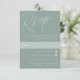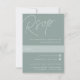 Conçu pour correspondre à nos invitations de mariage Script Watermark, cette carte RSVP basée sur la typographie élégante est parfaite pour les RSVP par courrier traditionnel. Le design comporte des lettres de script surdimensionnées en haut, en ton sur les tons pour un effet filigrane. Personnalisez avec votre date RSVP souhaitée et coutume acceptez et refusez le libellé dans les lettres serif classiques alignées en bas à droite, ainsi que les choix de repas ou les sélections d'entrées. Notre colorway Eucalyptus est un élégant mélange de vert poussiéreux, avec des lettres vert pâle et blanc sur un arrière - plan vert sage.