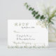Embrace a fresh, botanical aesthetic for your wedding with this elegant RSVP card. Featuring soft sage green eucalyptus leaves and delicate white floral sprays against a clean white background, this design is ideal for garden, woodland, or outdoor spring and summer weddings. The graceful script typography provides a whimsical yet organized way for your guests to respond by (date.....).