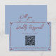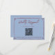 A simple and elegant calligraphy wedding QR Code RSVP card. That has a blue background and deep red burgundy hand drawn frame and info. And scannable QR code on the center.