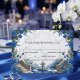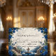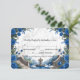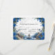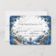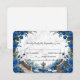 Transportez vos invités dans un manoir romantique au bord d'un lac. Cette élégante carte de réponse présente des florales aquarelles bleues profondes et une vue sur un jardin pittoresque pour donner le ton. Ce design met en valeur une illustration aquarelle symétrique sereine d'un grand escalier en pierre menant à un lac tranquille, avec des cygnes blancs élégants et un petit bateau en bois. La scène est encadrée par de luxuriants arrangements d'angle de roses royales bleues et navy, accentués de nuances grises fraîches et de feuillage vert atténué. L'arrière-plan utilise un effet de pierre en marbre imprimé doux pour ajouter de la profondeur et de la sophistication sans le coût d'un papier cartonné épais. Il s'agit d'une image imprimée plate avec un effet de marbre faux, et non une véritable pierre ou texture en relief.
