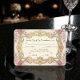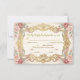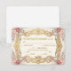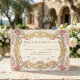 Transportez vos invités dans un conte de fées avec ce design inspiré du rococo, orné de fioritures antiques et de douces floraisons. Parfait pour les mariages de jardin formels. Ce design présente un cadre baroque somptueux et symétrique dans un ton jaune-or antique, orné de volutes et de filigranes complexes. Nichées dans les bordures, des roses illustrées à la main dans des nuances de rose tendre et de rose poussiéreux sont accentuées par un feuillage vert sauge. Une illustration fantaisiste de chérubin ancre le haut de la composition sur un fond chaud crème et ivoire. Le texte est présenté dans un élégant script calligraphique noir associé à une police serif classique pour la lisibilité. Il s'agit d'une image imprimée plate avec un effet de Faux Gold Foil, et non de métal en relief ou de gaufrage à chaud