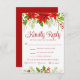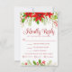 Cette carte classique rouge et verte de mariage de Noël RSVP présente des fleurs poinsettia vives au sommet de votre invitation et des baies sèches et feuilles au bas. Une carte de réponse festive et lumineuse avec choix de repas en écriture rouge pour un événement de vacances. Laissez vos invités choisir une option entrée.