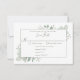 Cette conception présente des feuilles de feuillage à l'aquarelle, un mariage de verdure d'eucalyptus, et une simple carte de réponse RSVP, une simple carte de réponse incluse, un script de calligraphie élégant, avec une typographie moderne et classique, un thème botanique de la nature, une carte de réponse de mariage, une palette de couleurs vert sauge, printemps été automne hiver.
