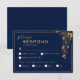 Cette carte de réponse florale dorée élégante sur fond bleu marine présente un fond bleu foncé orné d'un motif de feuillage floral doré complexe et d'une typographie moderne. La combinaison du bleu marine riche et de l'or scintillant crée une esthétique élégante et luxueuse. Affichez la collection sur cette page pour trouver des articles assortis. ♥Personnalisez-la avec vos informations. ♥ Si vous souhaitez modifier le style de police, la couleur ou l'emplacement du texte, cliquez simplement sur le bouton "Personnaliser davantage". ♥ Si vous avez besoin d'aide ou si vous avez une demande spéciale concernant ce design ou tout autre modèle dans mes magasins, n'hésitez pas à me contacter via le bouton "CONTACTER LE VENDEUR" et je serai ravi de vous aider !