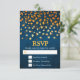 Cette carte rsvp de mariage rustique et grunge présente des feuilles d'or sur un arrière - plan en détresse bleu. Le texte combine les polices italique et serif pour un look moderne et élégant. Ce sera parfait pour les mariages de automne d'automne.