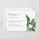Une carte de réponse de mariage élégante avec des feuilles de palmier tropical et des fleurs, facile à personnaliser avec vos détails. PERSONNALISATION : Si vous avez besoin d'une personnalisation de la conception, veuillez me contacter via le chat ; si vous avez besoin d'informations sur votre commande, les options d'expédition, etc., veuillez contacter Zazzle directement https://help.zazzle.com/hc/fr-fr/articles/221463567-Comment-contacter-le-service-client-Zazzle-. Consultez la collection pour les articles assortis en tant qu'autocollants de liste d'invités.