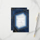 Un arrière - plan d'aquarelle dans les tons du bleu royal à la marine est surmonté d'une abstraite de lignes dorées fines et d'effets lumineux scintillants pour créer les pièces de cette belle suite mariage. La carte mariage "RSVP" présentée ici présente également un beau cadre de dégradé pour contenir tout votre texte. Ajoutez facilement vos propres noms, date mariage et détails de l'événement à l'aide du modèle fourni. Recherchez ID867 pour voir d'autres pièces et choix de couleurs pour cet ensemble.