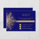 Flocon de neige doré sur la carte RSVP réponse/réponse de mariage d'hiver bleu qui comporte un flocon de neige doré sur l'arrière - plan bleu. Ce design personnalisé est un modèle entièrement personnalisable et fait partie d'un ensemble mariage parfait pour un mariage d'hiver ou de Noël.