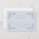 Assurez-vous que vos invités répondent avec style avec la carte de réponse Fleur Bleue Vintage. Cette élégante carte horizontale présente un fond bleu poussiéreux avec des accents floraux vintage délicats et un motif assorti au verso. Parfaitement alignée avec votre thème de mariage sophistiqué, elle offre un moyen raffiné et charmant pour les invités de confirmer leur présence.