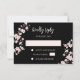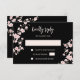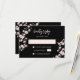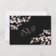 Cette élégante carte de réponse de mariage présente de belles fleurs de cerisier rose rose saumon sur fond noir. Invitation assortie disponible.