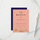 Cette carte d'enceinte RSVP fleur sauvage automne bleu marine élégante et romantique est conçue pour compléter toutes les invitations mariage de automne fleur sauvage. Avec un mélange harmonieux de teintes automnales telles que l'orange brûlé, la terre cuite, le corail, la pêche, le nombre brûlé, le violet, le jaune et les verts terreux, cette carte capte l'essence d'une fête d'automne. Les délicats fleurs sauvages d'aquarelle peints à la main évoquent la chaleur et le charme de la saison. La terre cuite pêche et les arrière - plans bleu marine ajoutent de l’élégance, tandis que les flancs fantaisistes aux teintes d’orange brûlé, de jaune, de nombre brûlé, d’orange, de pêche, de corail, de violet et de rose apportent une touche de beauté à la nature. L'élégante écriture et la typographie moderne confèrent à la carte un caractère sophistiqué, ce qui en fait le moyen idéal pour invitation vos invités à partager votre journée spéciale. Conçu par l'artiste Catherine Sweetman, cette carte RSVP garde l'atmosphère intime et cosy d'une fête inspirée du boho tout en offrant un format facile à personnaliser pour répondre à vos invités. Le design intemporel et les couleurs chaleureuses font de cette carte le compagnon parfait de votre faire-part de mariage, offrant une touche chaleureuse et chaleureuse à votre événement.
