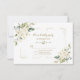 Elégant design de carte avec des fleurs blanches d'aquarelle et des feuilles verts, un cadre de parties scintillant en faux or et des confettis, séparateur floral, sur un arrière - plan blanc. Sur le dos les mêmes bouquets de fleurs et le cadre. Utilisez l'outil Personnaliser pour ajouter vos informations, modifier les polices, les couleurs de la police. Pour les articles correspondants, veuillez visiter ma collection de fleurs bleues bordeaux.